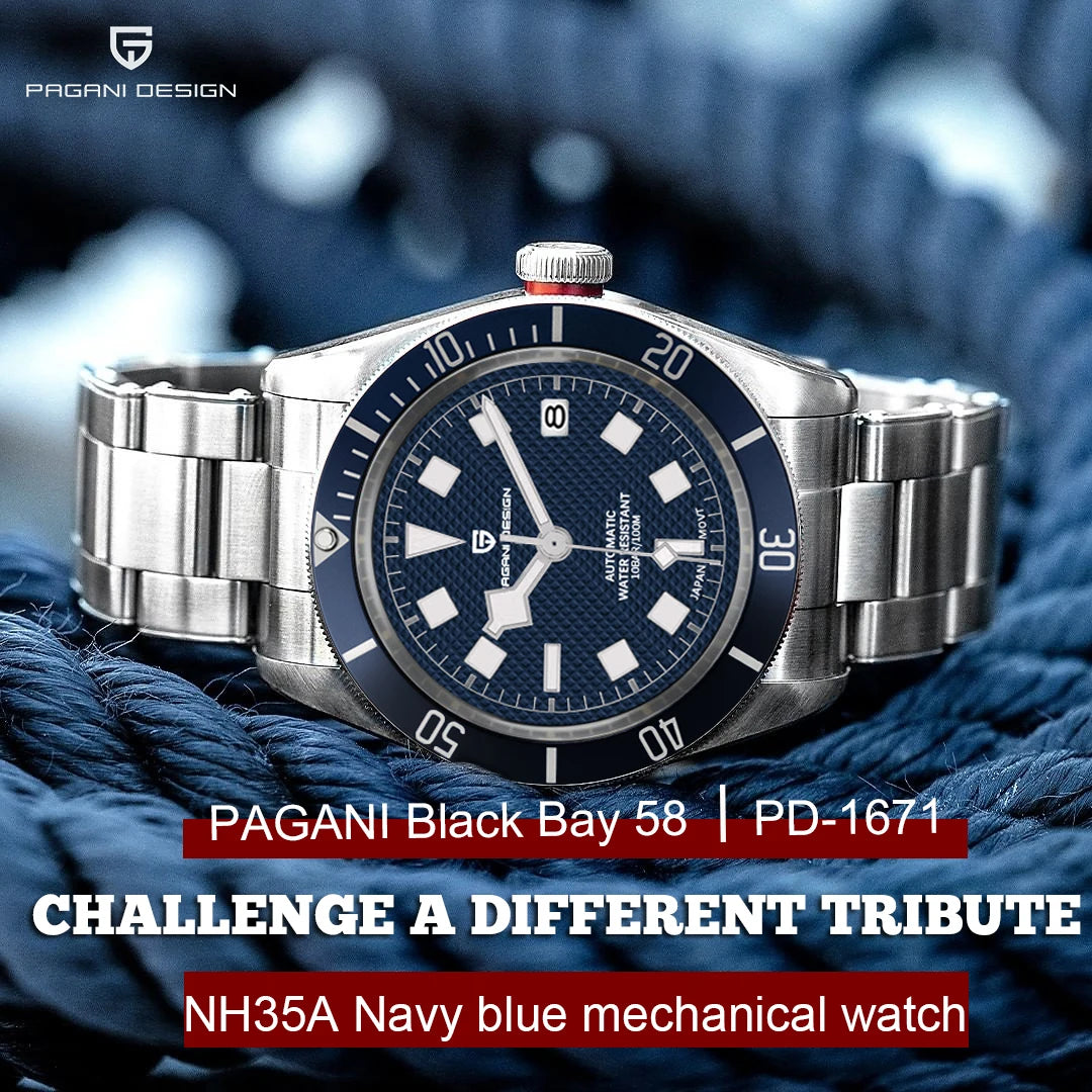 2025 New PAGANI DESIGN BB58 Mechanical Wristwatch men Luxury Automatic watch for men Waterproof steel strap NH35A Reloj Hombre