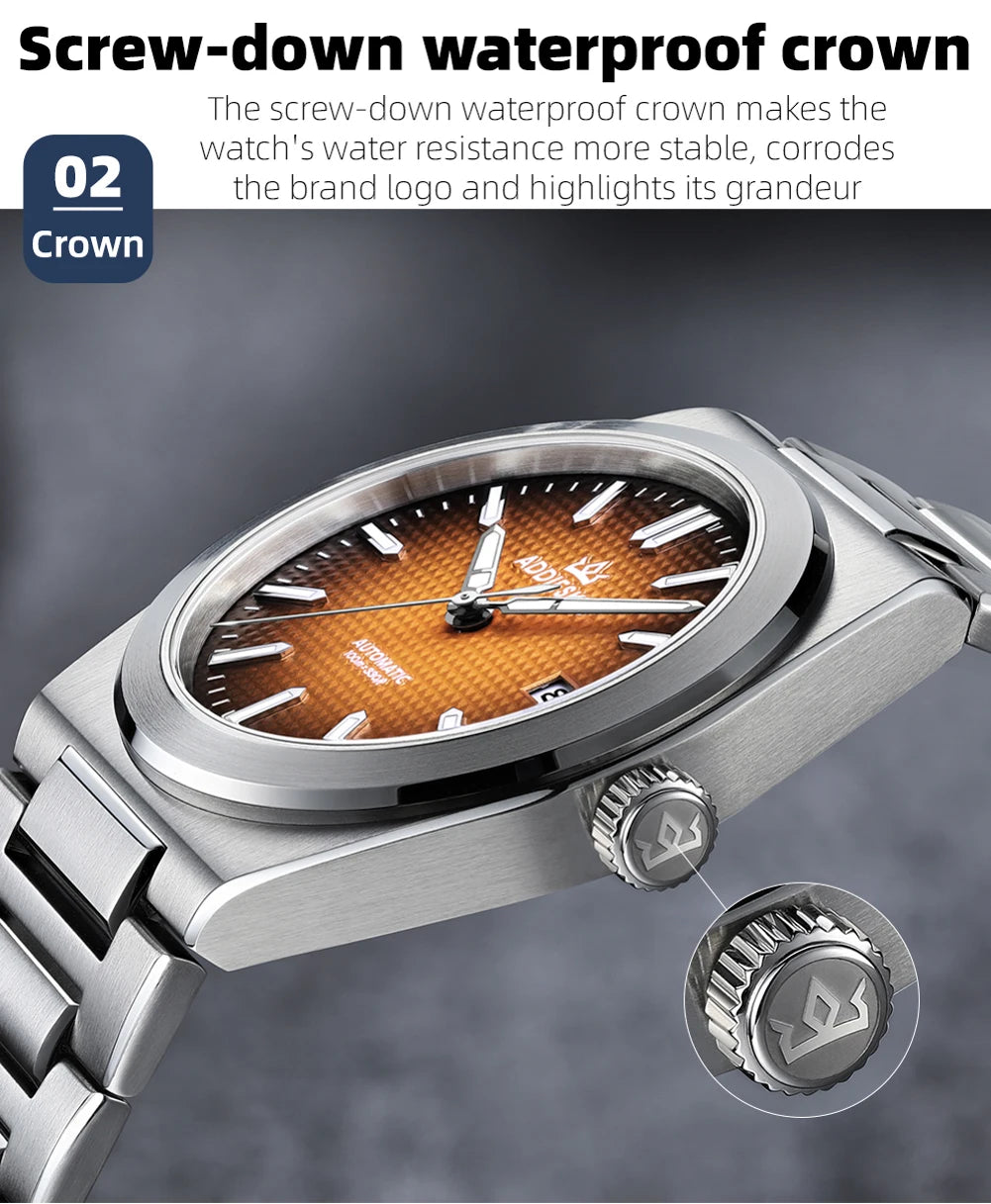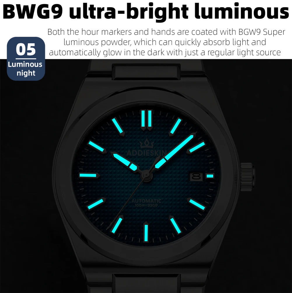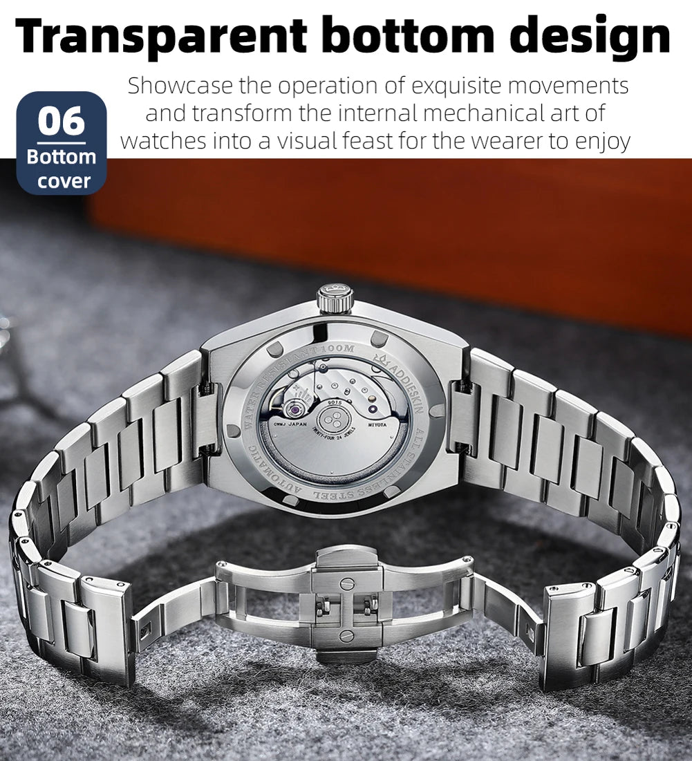 ADDIESKIN Automatic Men’s Mechanical Watch Japan 9015 Movement Sapphire Glass Luminous 316L Stainless Steel 100M Waterproof