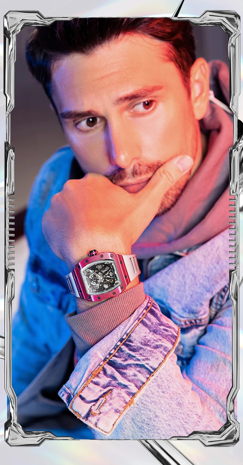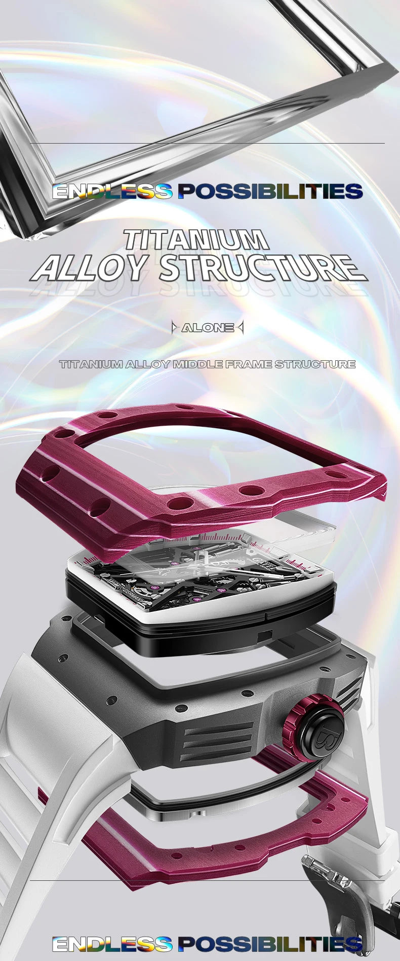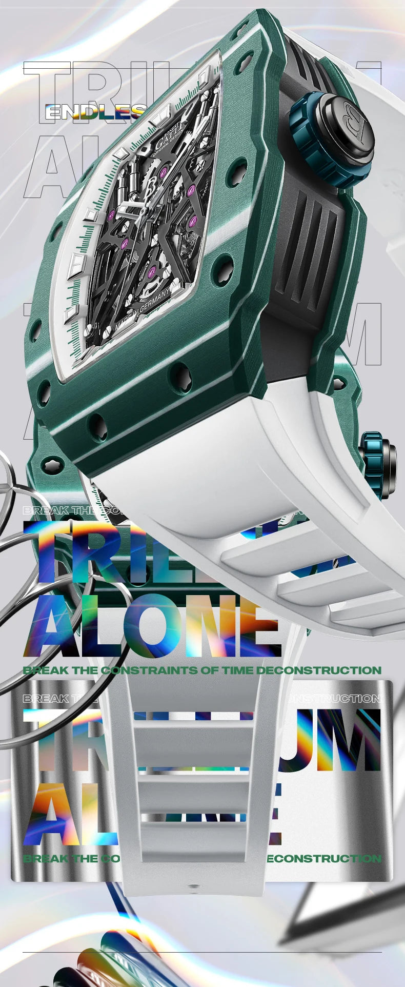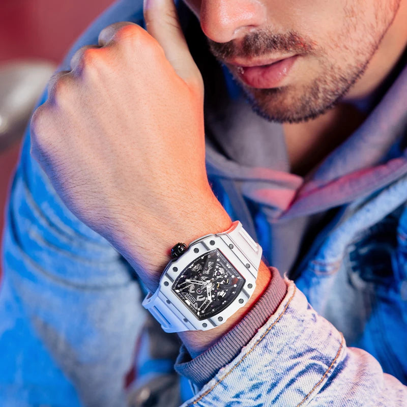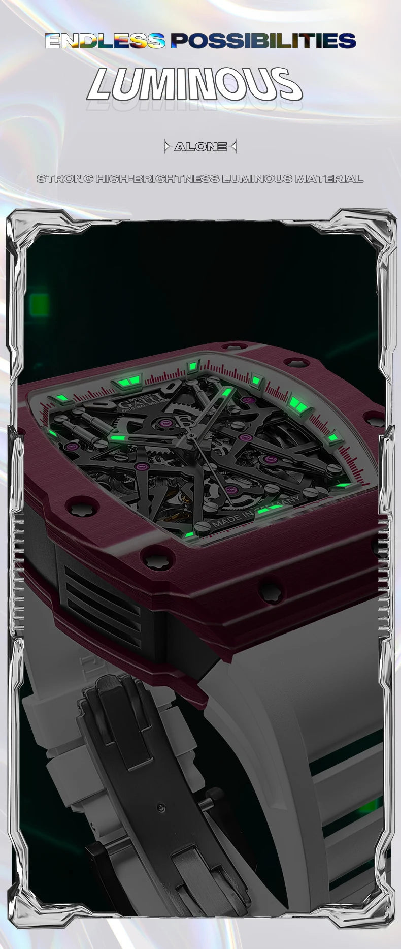 BONEST GATTI Brand 9906 Watch Carbon Fiber Men Fashion Light Luxury Through Hollow Dial Rubber Strap Automatic Mechanical Watch